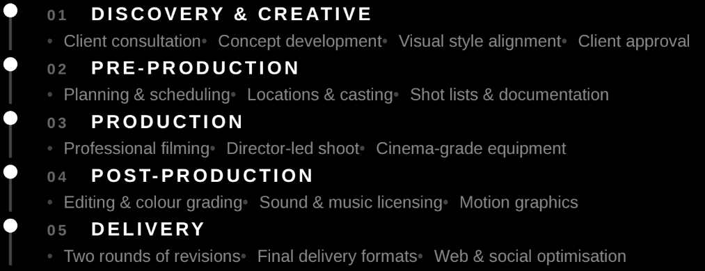 We offer a comprehensive production service, overseeing every stage of the process from initial concept development through to final delivery.